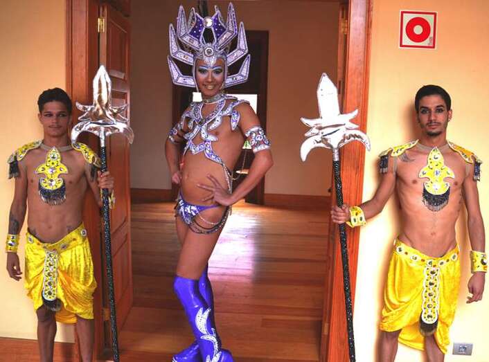 Esta novedad, además de algunos adelantos de la programación, la dieron a conocer este lunes la alcaldesa de Telde, Mari Carmen Castellano, y el edil de Festejos, Agustín Pérez, en una rueda de prensa en la Casa Condal. Ambos mandatarios estuvieron franqueados por la Reina de 2014, Suna Emboirik, además de una guardia pretoriana y un drag que les abrieron paso para entrar en la sala.