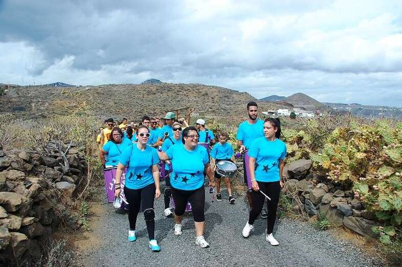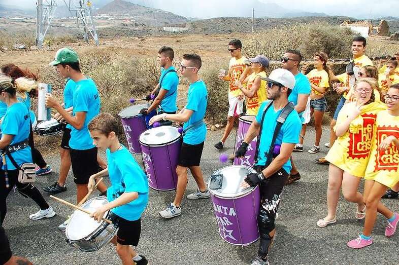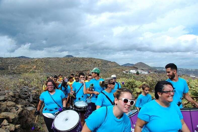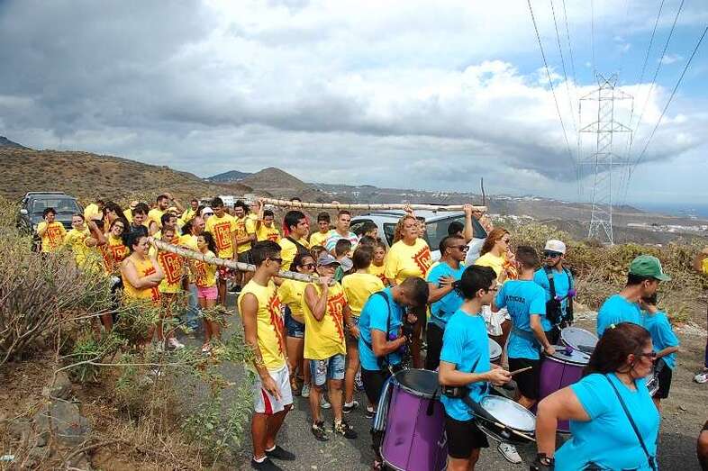 Telde.- Unos 100 vecinos de todas las edades de Caserones Altos celebraron este domingo con un fuerte bochorno ambiental y con amenaza de lluvia la duodécima Bajada del Pitón al ritmo impuesto por los tambores de la batucada La Santa Star. TA avanza reportaje gráfico de la fiesta