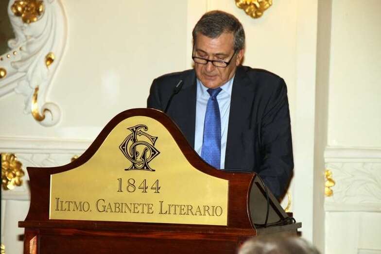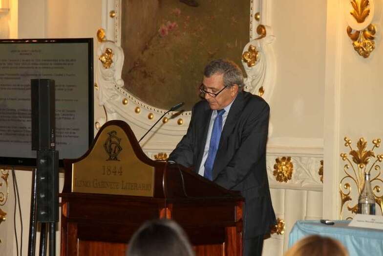 Interviene don Juan Miguel Sanjuan y Jover, Vicepresidente del Gabinete Literario: “Bienvenidos a todos. Nosotros desde el gabinete nos sentimos muy satisfechos de que aquí hoy se esté celebrando el 40º Aniversario de la fundación de la demarcación. Los que somos de aquí sabemos que esta casa ha sido siempre un lugar de acogida para muchísimos actos que han marcado a la isla, la ciudad y Canarias también y por tanto nosotros nos alegramos de dar la bienvenida al Colegio de Ingenieros de Caminos en esta casa. Muchas gracias por venir”.