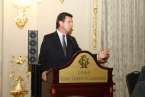 Yo quiero aprovechar este momento para destacar que los ingenieros de caminos formamos un colectivo que se siente orgulloso de serlo, no lo decimos con una visión corporativa que ya está superada, sino desde el convencimiento de que los ingenieros de caminos han contribuido de forma decidida a vertebrar Canarias, hacer habitable su suelo y a elevar el nivel de vida de sus habitantes, comunicando comarcas, acortando distancias entre poblaciones, regulando barrancos, con presas y canales y ordenando el territorio, hemos ayudado como pocos colectivos a estructurar nuestros espacios insulares. Gracias”.