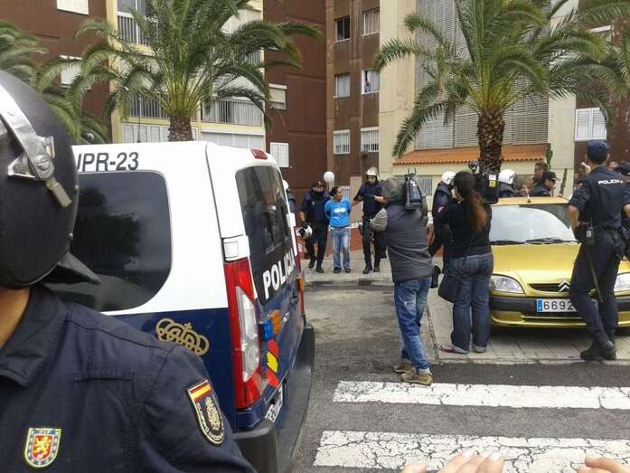 Una gran cantidad de personas y medios de comunicación se concentraron en el inmueble este miércoles. Durante varias horas los ahora detenidos se había esposado a los barrotes de las ventanas para evitar salir de la casa. A la llegada de la comisión judicial, ésta se ha negado a negociar y ha dado la orden a los agentes de que entraran en el interior. Tras varios intentos, los funcionarios han logrado acceder al inmueble por la fuerza y tras un forcejeo y el corte de las esposas se los han llevado a la Comisaría del Cuerpo Nacional de Policía de Telde.