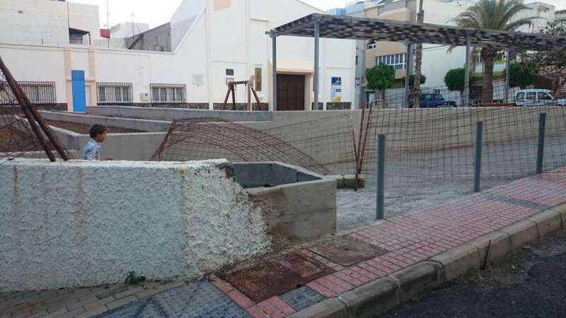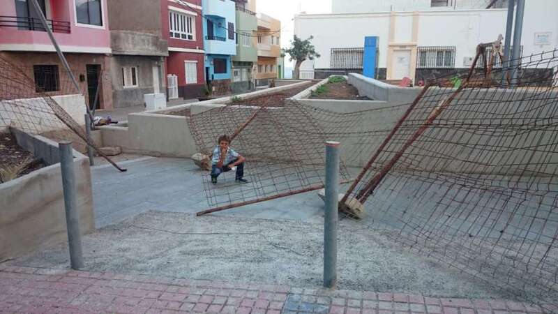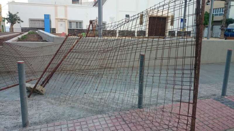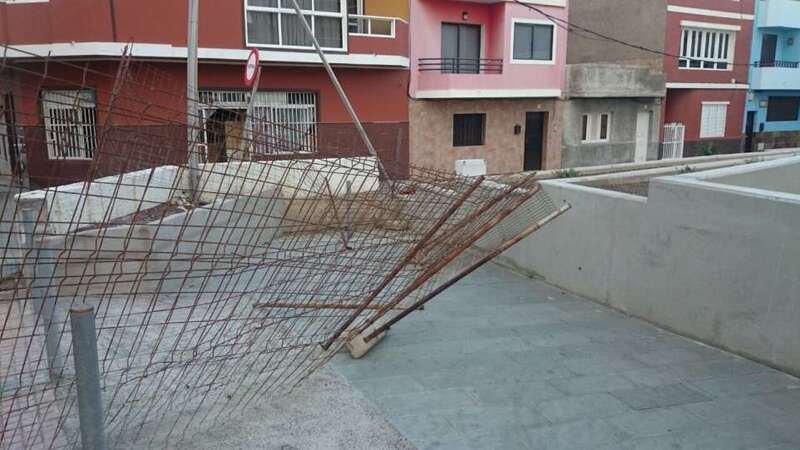 Telde.- La inconclusa plaza de Clavellinas se ha convertido en estos días en un entramado de alambres y vallas caídas, que deja una estampa más parecida a una zona después de una catástrofe que a un espacio público en pleno barrio de Salinetas y Melenara.