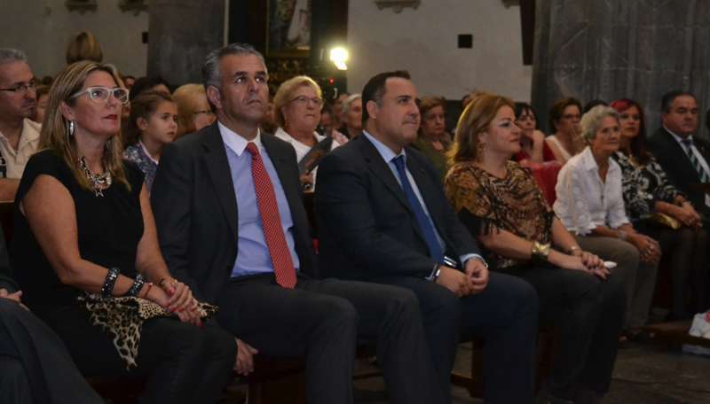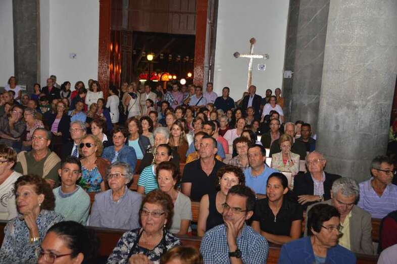 Varios cientos de personas abarrotaban esta noche la Iglesia de San Gregorio para asistir al arranque de los fastos del compatrono de la ciudad. Al evento, que se retrasó unos quince minutos sobre el horario previsto, acudió una amplia representación de la Corporación municipal, encabezada por la alcaldesa Mari Carmen Castellano, y los consejeros del Cabildo grancanario, Francisco Santana y Antonio Hernández Lobo.