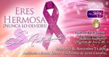 Telde.- El Palacio de Congresos de Canarias - Auditorio Alfredo Kraus acogerá la V Gala Adelante de la Asociación Canaria de Cáncer de Mama y Ginecológico, que se desarrollará el sábado, día 15 de noviembre, a las 21.00 horas, con el fin de recaudar fondos para contribuir a la labor de la Asociación y seguir ofreciendo apoyo emocional, fisioterapéutico, laboral y social tanto a los afectados como a sus familiares. Esta nueva edición estará presentada por Roberto Herrera y contará con la actuación del teldense José Vélez.