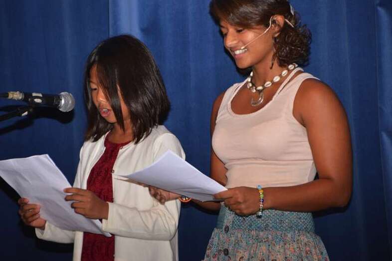 El acto fue presentado por la periodista Ainhoa Rodríguez, quien contó con la inestimable colaboración de las niñas Sarala y Sanju.