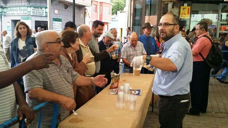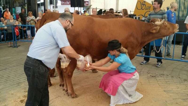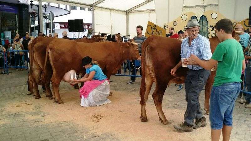 El acto incluido en el programa festivo en honor del compatrono de la ciudad , San Gregorio, es una de las citas tradicionales en el día grande de estos festejos. Cientos de personas se arremolinaron en cuestión de minutos en torno al espacio acotado por el Ayuntamiento de Telde para la ordeñada de las vacas y no perderse la posibilidad de saborear leche fresca con gofio. Según el edil se repartieron unos 300 vasos de leche.