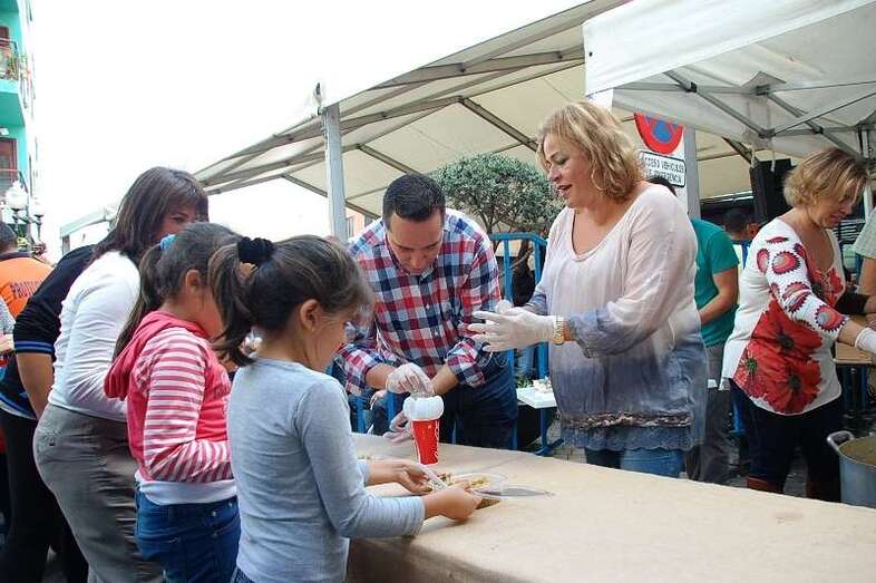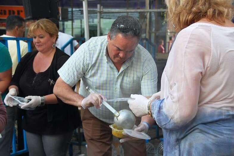 El potaje que se prepara a fuego lento se comenzará a repartir a las 13.45 horas, acompañado de gofio del Molino de Fuego. En la distribución del plato típico canario participaron la alcaldesa Mari Carmen Castellano, el consejero insular Francisco Santana y los concejales Sonsoles Martín y Agustín Pérez. También colaboró el primer edil de Moya, Hipólito Suárez, que acudió a Telde a arropar al grupo de mayores de su municipio que formalizó un hermanamiento conon el grupo de mayores de esta localidad.