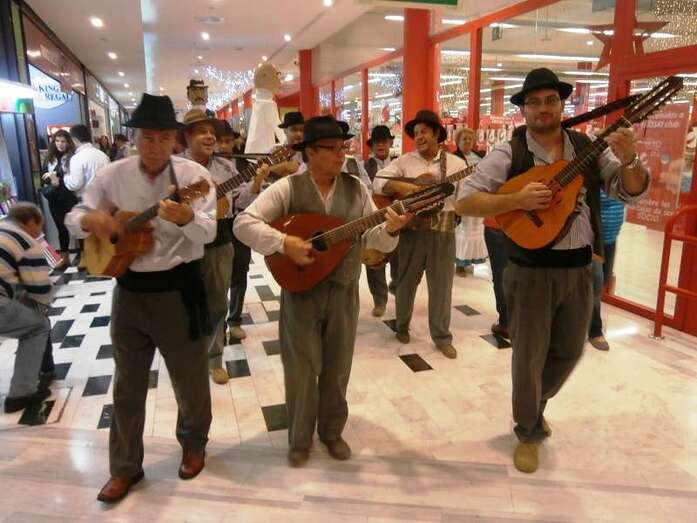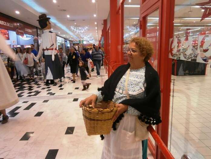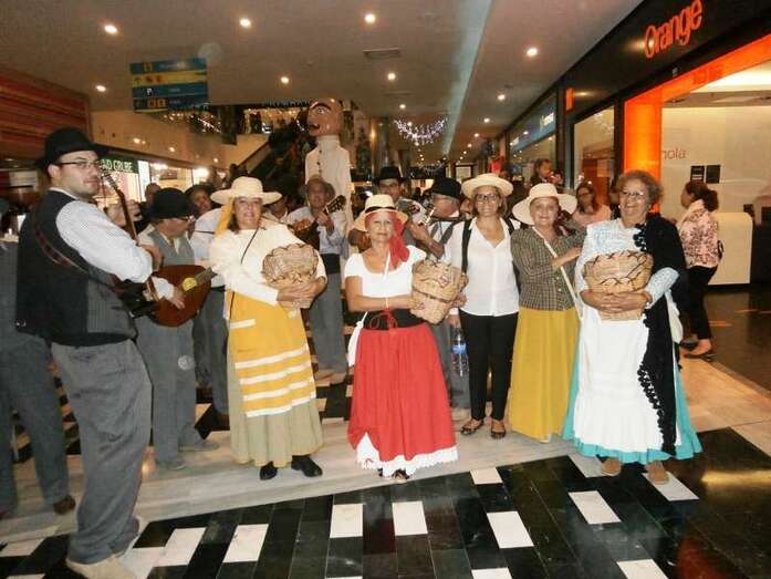 Miembros del colectivo organizador de las populares fiestas en honor de la Inmaculada Concepción y la Caña Dulce, ataviados con vestimenta tradicional canaria, efectuaron el desfile por el CC Las Terrazas en las primeras horas de la tarde (12.30 a 14.40 horas) con el acompañamiento musical de una batucada y con el concurso de papahuevos.