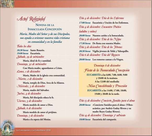 Programa de las fiestas de La Concepción y la Caña Dulce 2014.