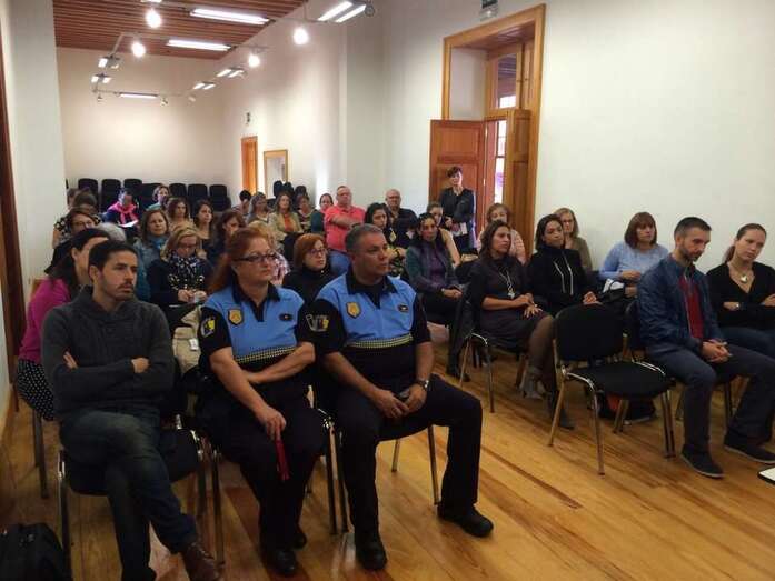 La acción formativa, preventiva y de sensibilización ha estado enfocada fundamentalmente a los agentes sociales en la intervención con menores. En la Sala se encontraban presente representantes del Servicio de Atención Familiar de la Policía Nacional (SAF), Policía Local, representantes de colectivos de mujeres, así como técnicos de Igualdad, Educación, Servicios Sociales y sanitarios.