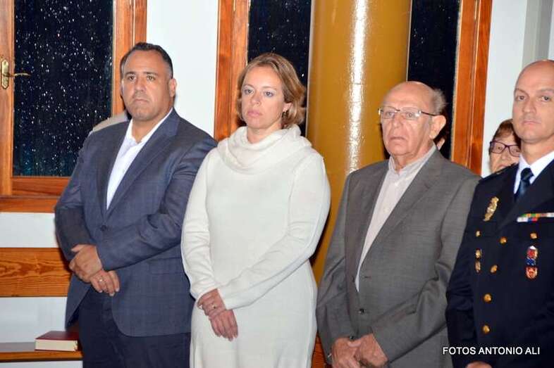 A los actos de este jueves acudieron varios concejales del Ayuntamiento de Telde y una representación del Cuerpo Nacional de Policía encabezad por el comisario-jefe de la ciudad, Jesús García Aller.