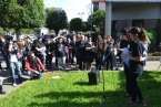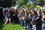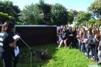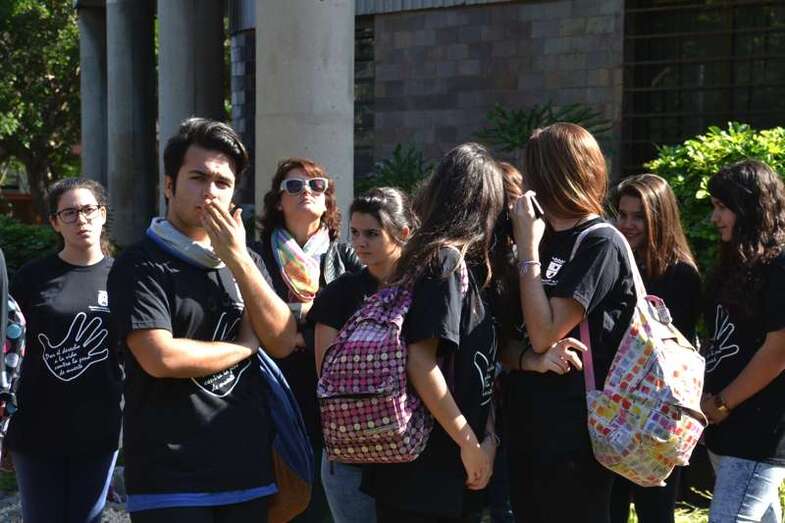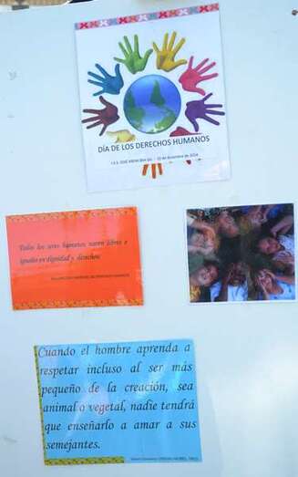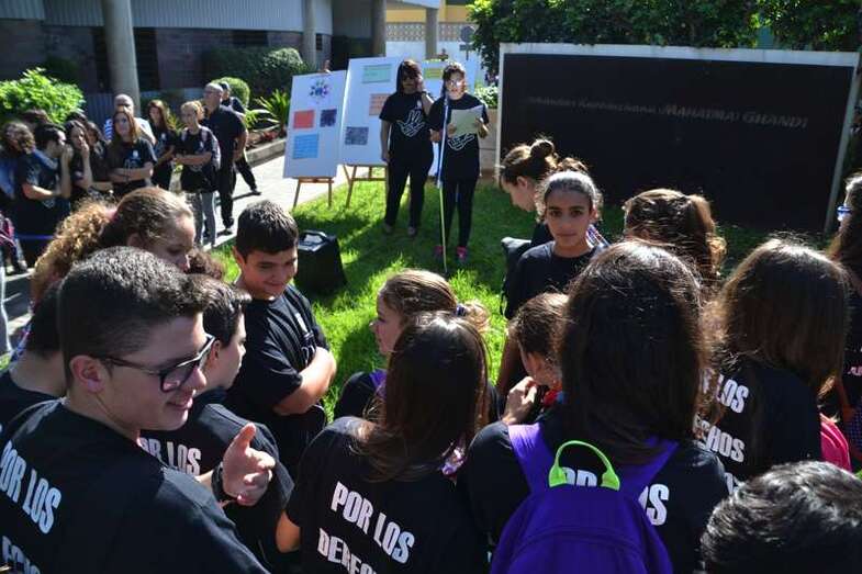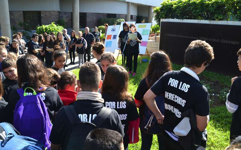 Los estudiantes presentes en esta conmemoración vestían camisetas negras con el lema Por los derechos humanos.