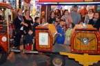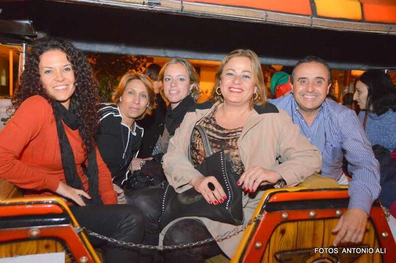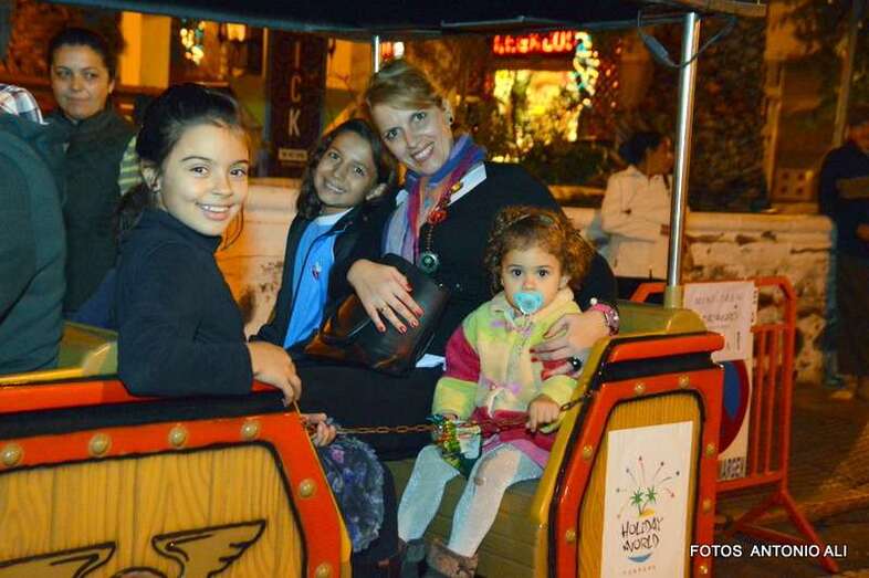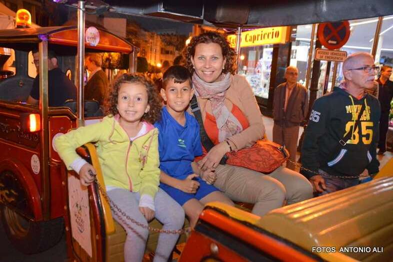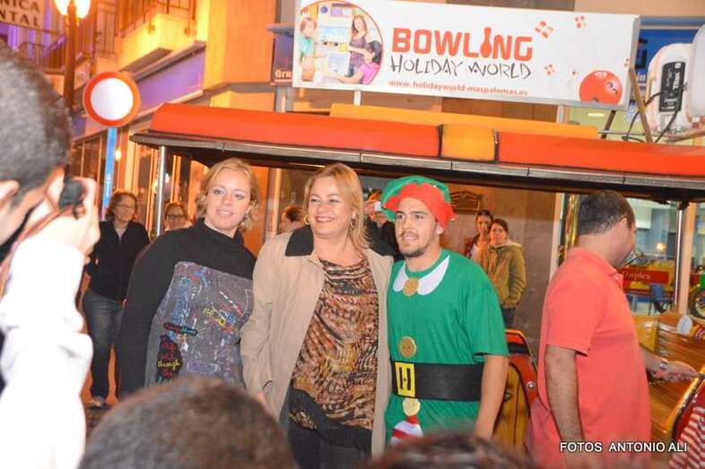 La alcaldesa Mari Carmen Castellano y la concejala Sonsoles Martín no han querido perderse la cita y han estrenado este trenecito cedido expresamente para la ocasión por el parque de atracciones Holidayworld Maspalomas.