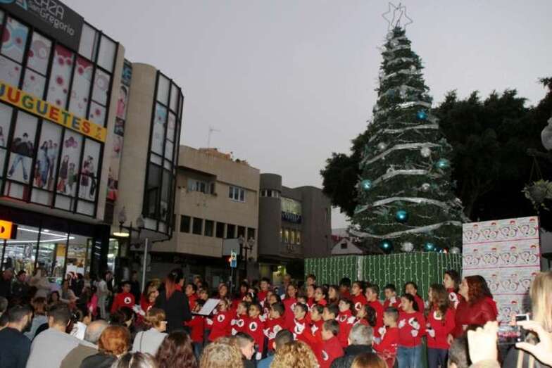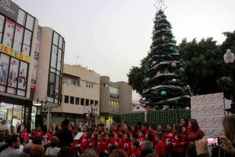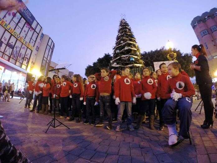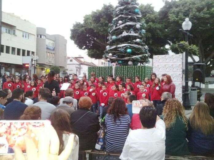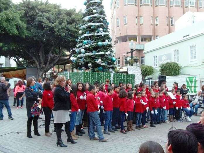 Telde.- El coro del Colegio Lucía Jiménez Oliva, de Ojos de Garza, ofreció ayer un repertorio de villancicos en la zona peatonal de Los Llanos de Telde con motivo de la campaña de Navidad. TA ofrece reportaje gráfico.