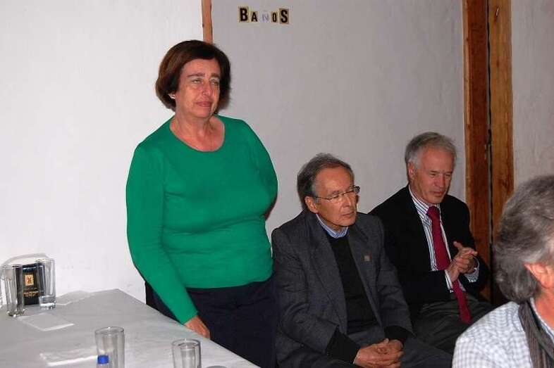 Elisa Rodríguez, a la que la Orden dio la bienvenida esta noche, acudió acompañada de su marido. Se da la circunstancia de la primera mujer del grupo es prima del promotor de la idea de abrir la Orden a las mujeres.