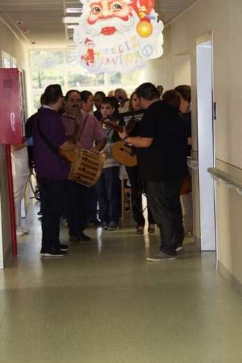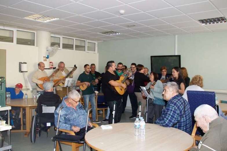 Los residentes, sus cuidadores y los visitantes, cantaron y bailaron con los sones de estos aficionados de la Escuela de Folklore del Ayuntamiento de Telde, dirigidos por el joven y experimentado folklorista Josito Suárez.