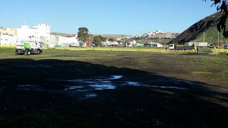 El Ayuntamiento de Telde habilitó una parcela, junto a la ermita, de casi 1.000 metros cuadrados donde se preparó un helipuerto para que aterrizara la aeronave real con las tres personas más esperadas este día 5 de enero.