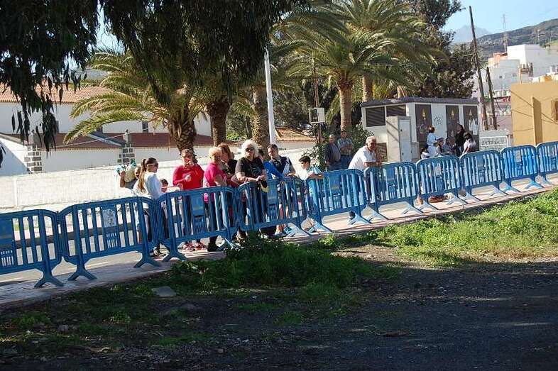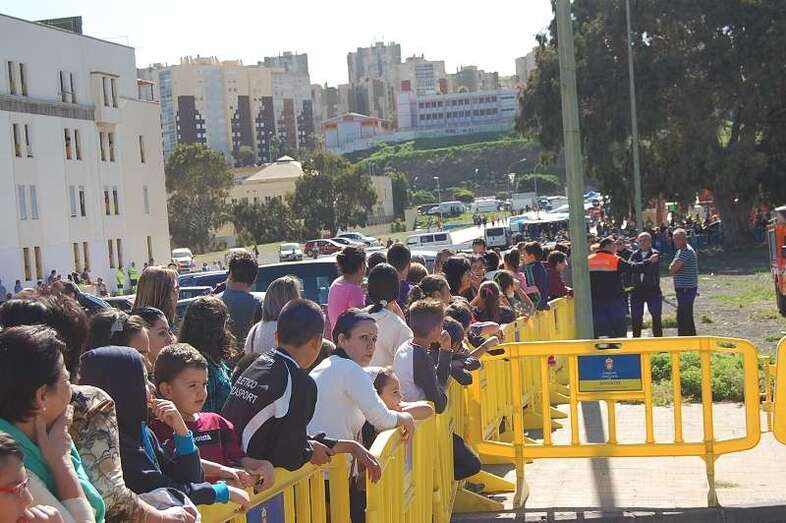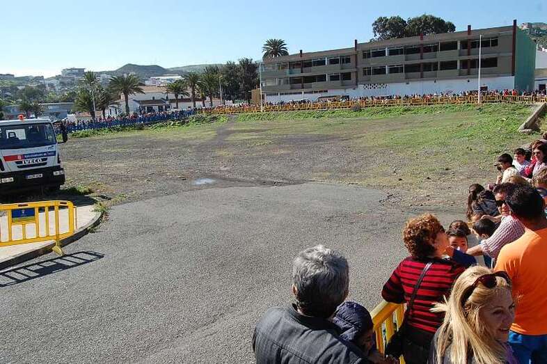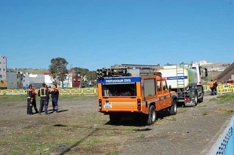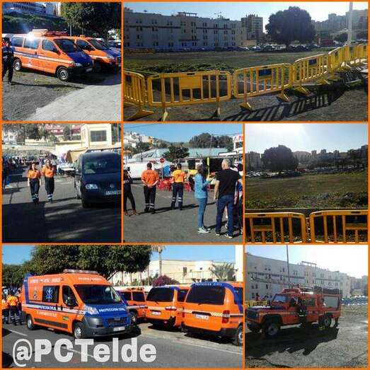 Por motivos de seguridad se acordó la zona con vallas y se desplegó un amplio operativo. Entre los que se encontranban miembros de Protección Civil y Policía Local de Telde. También un camión cisterna de Parques y jardines se desplazóo hasta el lugar para mojar la tierra y evitar incidentes a la llegada del aparato.