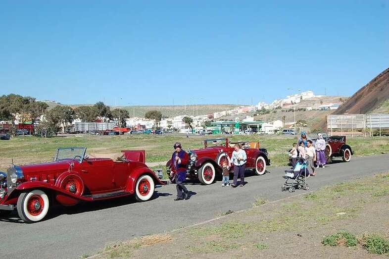 Al descender de la aeronave, que les recogió en el Estadio Municipal Pablo Hernández (El Hornillo), fueron recibidos nada más poner el pie en el suelo por la alcaldesa de Telde, Mari Carmen Castellano, además de los ediles Sonsoles Martín y Agustín Pérez. Inmediatamente Sus Majestades se subieron en coches antiguos y fueron trasladados a la explanada del mercadillo, donde  Festejos instaló un escenario. Castellano acompañó a Baltasar en el vehículo que abría la comitiva real, mientras cientos de niños y adultos se agolpaban en los márgenes del pasillo habilitado por Protección Civil y Policía Local para la salida de los coches.