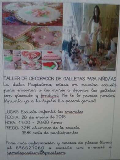 El 28 de enero, de 17.00 a 20.00 horas, tendrá lugar un taller de decoración de galletas para niños. Aprenderán el secreto del glaseado y fondant. El precio es de 32 euros para alumnos y de 35 para el resto.