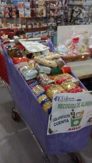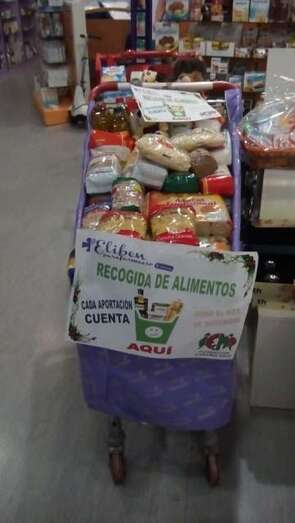punto de recogida de alimentos en el Centro Comercial El Mirador para las personas más necesitadas. Tras culminar la campaña han recibido gran cantidad de artículos.