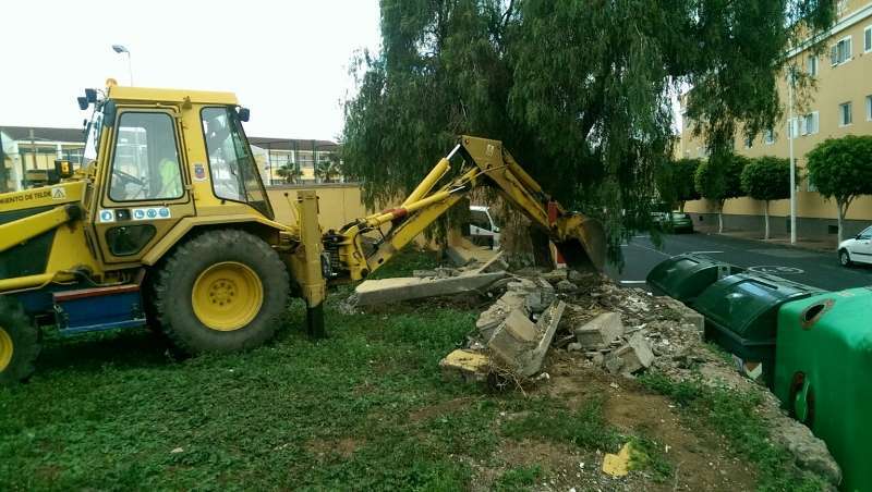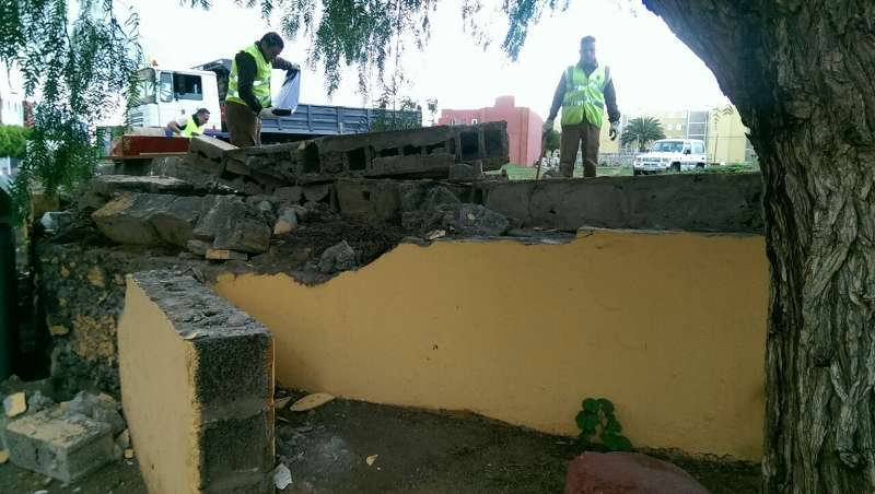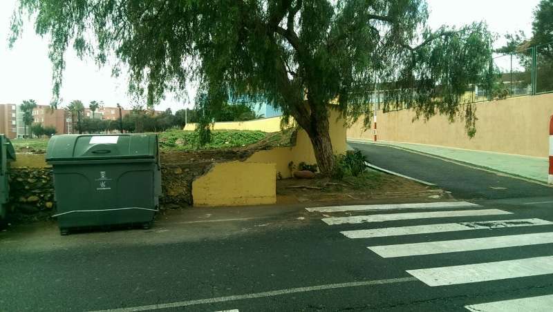 Telde.- Los vecinos del barrio de La Pardilla estaban alarmados por el mal estado de un muro que se encontraba en las inmediaciones del CEIP Guillermina Brito. Debido al tránsito fluido de escolares por la zona y ante el fundado temor de que la estructura terminara cediendo y pudiera causar alguna desgracia personal, Servicios Municipales intervino de urgencia.