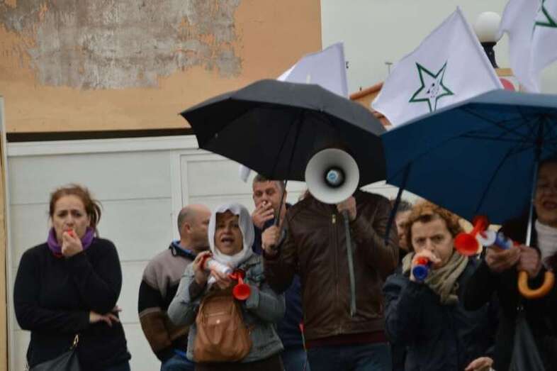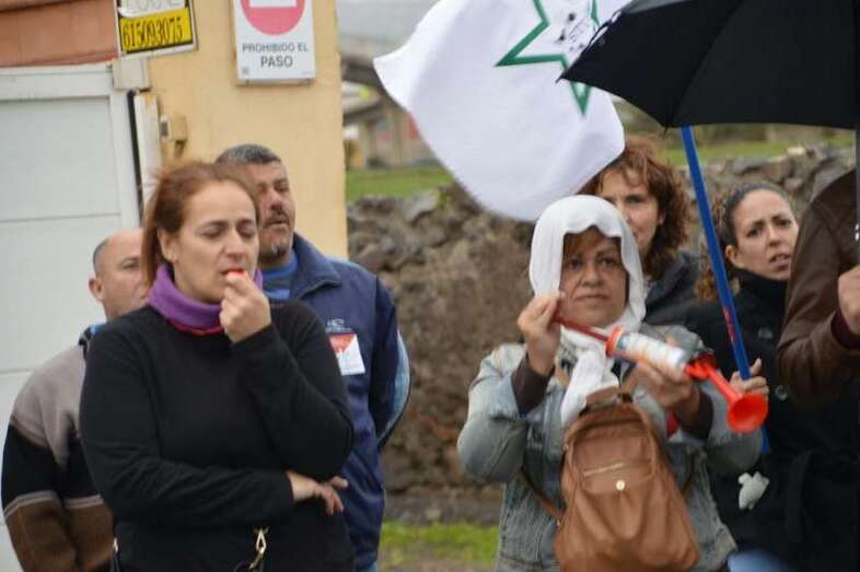 Trabajadores este lunes durante la protesta (Foto TA) Trabajadores este lunes durante la protesta (Foto TA)