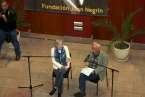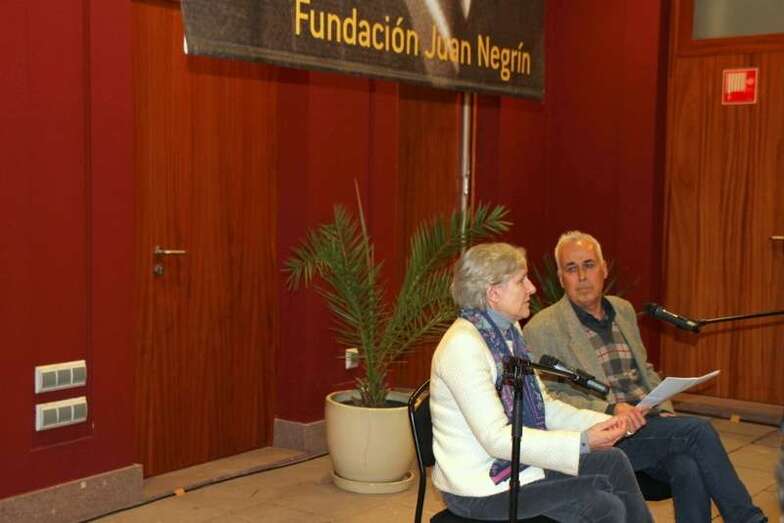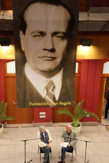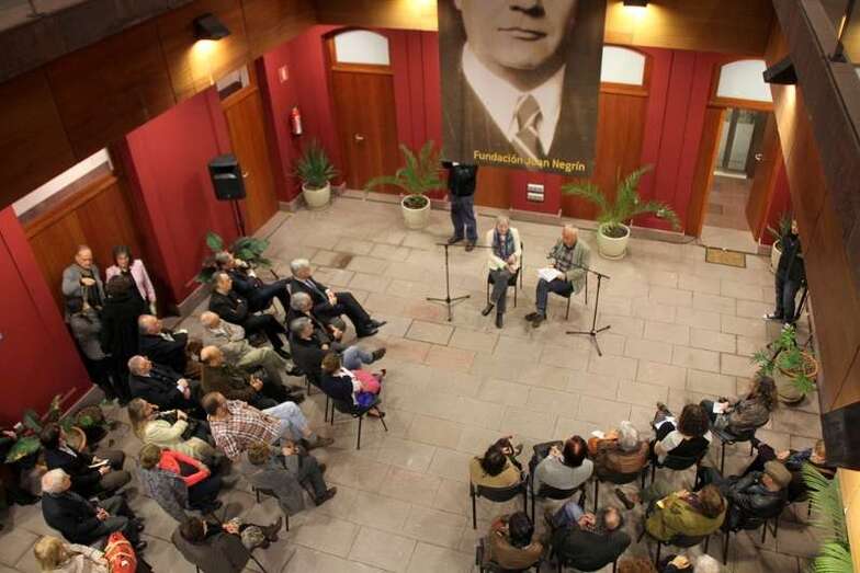 En presencia de autoridades, Vicepresidente del Gobierno de Canarias, don José Miguel Pérez, Director General de Cultura y Patrimonio Histórico del Cabildo de Gran Canaria, don Fernando Pérez González, don Eligio Díaz Hernández, representantes de instituciones, y entidades, personalidades, periodistas, medios de comunicación, docentes, y público asistente, se inicia la entrevista en el patio central del recinto, con la bienvenida y el agradecimiento del Presidente de la Fundación D. José Medina Jiménez y las empresas colaboradoras. Toma la palabra doña Carmen Negrín, nieta del estadista en respuesta al periodista Javier Durán: “El 1 de abril mientras que Franco estaba anunciando la victoria, Juan Negrín tuvo una reunión de diputados en el exilio y justamente insistiendo sobre el hecho de que el gobierno español debía seguir existiendo en el exilio.- Hubo un debate bastante difícil en el que Dolores Ibarruri lo apoyó, pero insistió en que debía haber una entidad formal que se preocupe, se ocupe de los exiliados.- En un primer momento el hecho de que Negrín decidiera irse a Londres y no a Méjico, aún sabiendo que Londres no fue un aliado, pero sabe que allí va a hacer la resistencia. – En cuanto a su biografía hay algunos temas que le criticaban los propios del Partido Socialista. Las memorias son muy cortas, durante su redacción falleció - Su relación con Gran Canaria, hay que decir que él miraba más al porvenir que al pasado, tal vez por eso empezó a escribir sus memorias muy tarde, y además porque murió con 64 años. Recuerdo que no hablaba tanto de Canarias entendiendo posteriormente él decía que era guanche, y era como su jardín secreto, protegido, posiblemente como algo muy querido, le dolía mucho hablar de ello. La familia directa estaba en Francia, su padre ya fallecido.