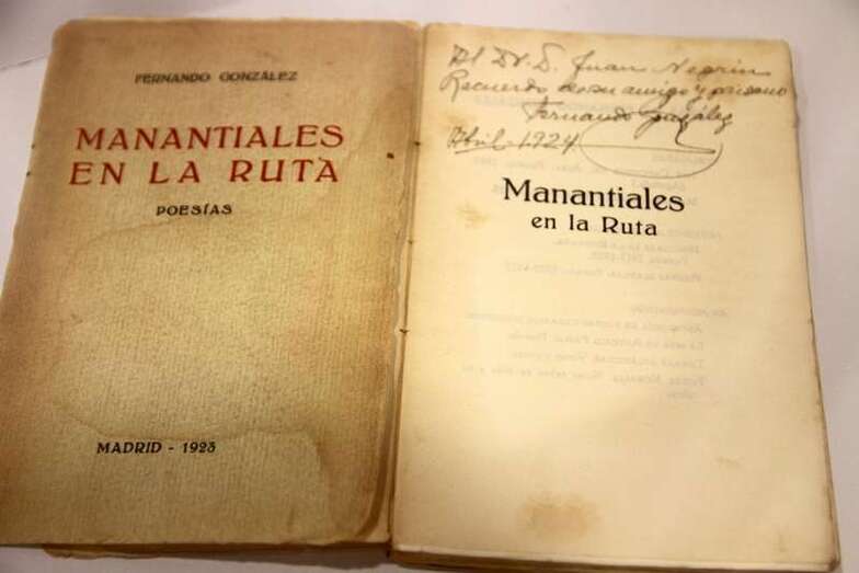 Fotos de la actuación en el barrio de La Isleta, de las vías de entonces en el Puerto de La Luz, enlaces con la capital, reseñas históricas, biográficas, documentación personal de Negrín, etc. Entre los libros expuestos de su biblioteca figura una edición literaria del poeta teldense Fernando González, el poemario Manantiales en la Ruta, firmado y dedicado a su amigo Juan Negrín: Al Dr. D. Juan Negrín. Recuerdo de su amigo y paisano. Fernando González, Abril, 1924.