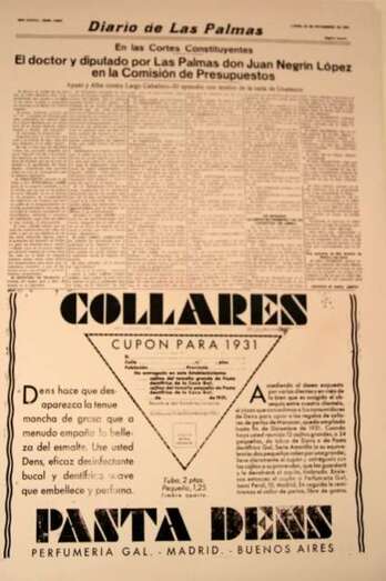 Telde.- La Fundación Juan Negrín presenta la exposición El compromiso canario de Negrín y Pascua, 1931-1933. La muestra, que ha comisariado el periodista teldense Diego Talavera Alemán, tiene a un periódico local -el Diario de Las Palmas- como hilo conductor de una historia que ha permanecido oculta hasta el momento.