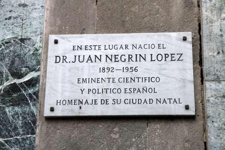 Según reza la placa descubierta el día de su inauguración: La sede de esta Fundación se inauguró el 3 de febrero de 2014, en el CXXII aniversario del nacimiento en Las Palmas de Gran Canaria de Juan Negrín López (1892- 1956), eminente científico y estadista, Presidente del Gobierno de la II República”.