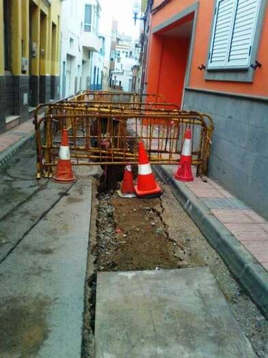 “Por desgracia para los residentes estas obras se han alargado en el tiempo dejando incomunicada la calle para vehículos de emergencias y sólo con el pequeño espacio que se ve para peatones. No es excusa decir que son obras con presupuestos del Cabildo ya que son calles municipales y es el Consistorio quién autoriza las obras y debe supervisar las”, argumenta Rodríguez.