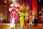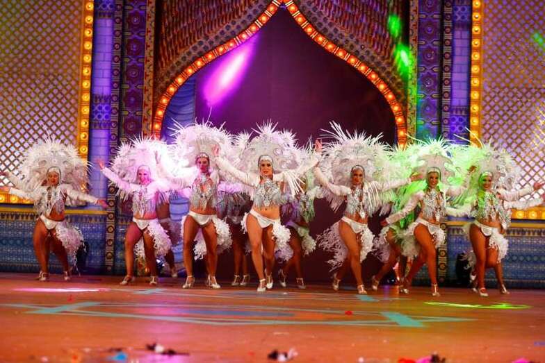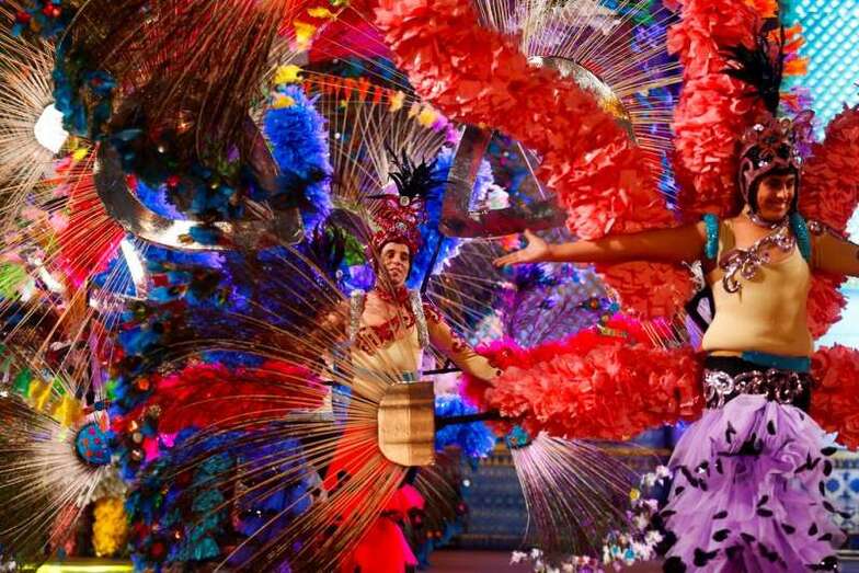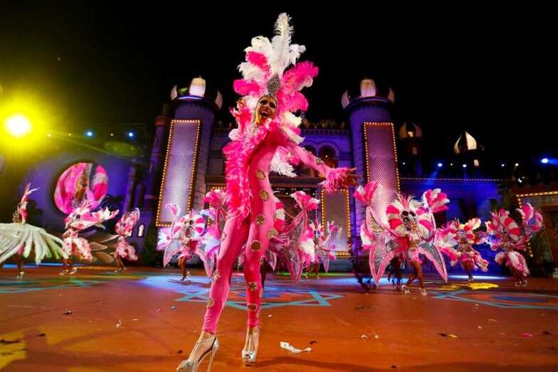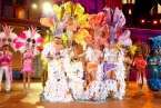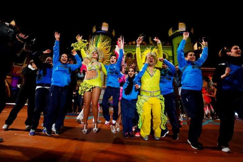 El concurso, presentado por Carolina Pérez, puso sobre el escenario los ingredientes fundamentales de la fiesta: color, plumas, lentejuelas, coreografías, ritmo y una buena dosis del inconfundible sonido de percusión ejecutado por las batucadas que acompañaron a los grupos.