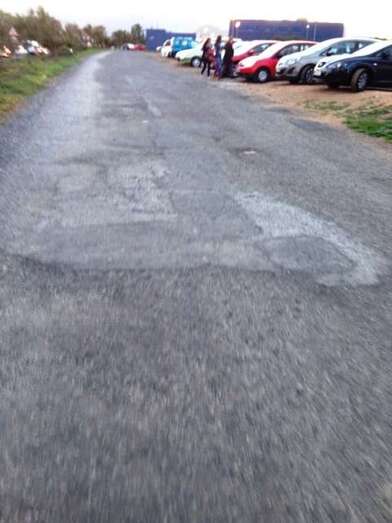 Auguran que cualquier día puede ocurrir una desgracia en esta vía sin iluminación pública debido a que los conductores van sorteando los socavones para evitar daños a sus vehículos, que han sufrido ya averías por el estado del firme de este acceso. Advierten además de que los alumnos que acuden en motos arriesgan mucho al transitar por esta calzada llena de baches profundos y gravilla.