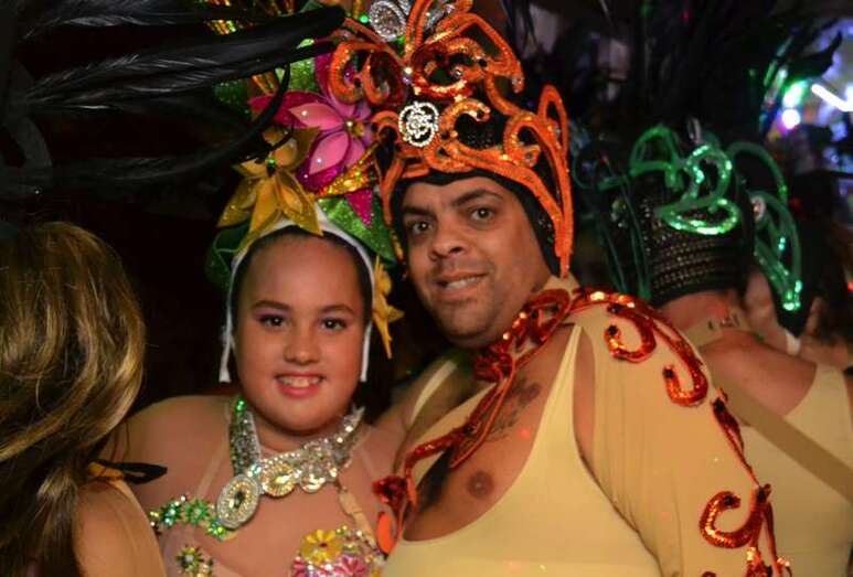 En las puertas del coliseo teldense, batucadas y comparsas animaron con sus sonidos y bailes la llegada del público y los momentos previos del pregón.
