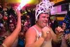 Un marchoso pasacalle anuncia por el casco de la ciudad el inicio de las carnestolendas