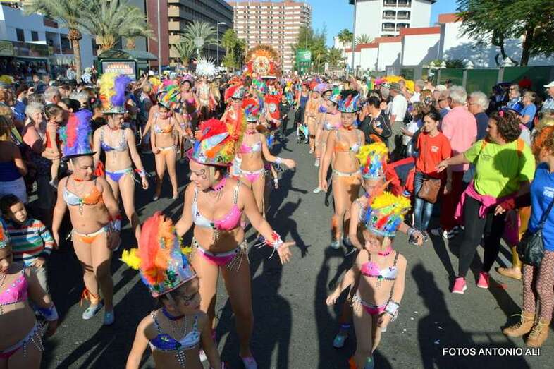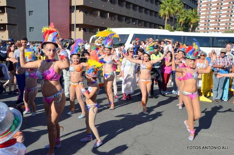 El recorrido se inició a las 17.00 horas con una temperatura de 22 grados y el cielo despejado, desde el Hotel Parque Tropical para recorrer las avenidas de Italia y Gran Canaria, y finalizó en la Avenida del Turoperador Tui de Campo Internacional.