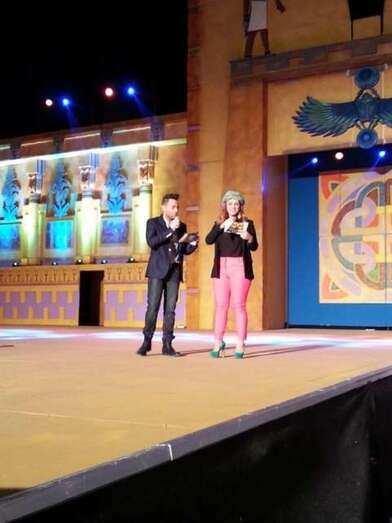 En representación de Perfumerías Sabina, Biosalud Natura, Chez Funny Boys. Cn un diseño de: Carlos Suárez Pestana y Cuadrilatero Teatro.