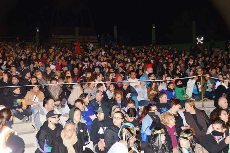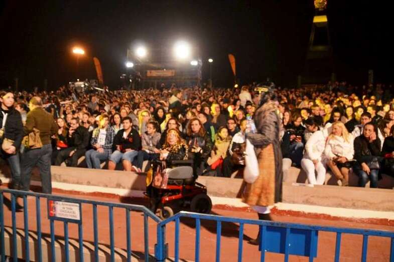 Pese a ser una noche algo fría, el ambiente es bueno en el graderío, en donde cerca de 5.000 personas presencian este show carnavalero que también se retransmite en directo a nivel nacional a través de La 2 de Televisión Española.