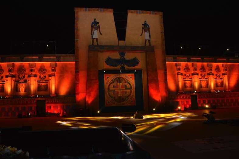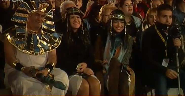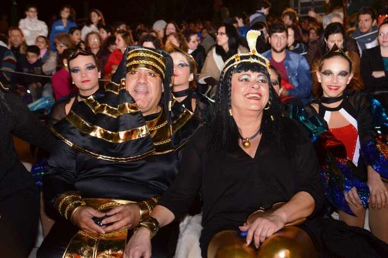 Un espectáculo inicial en el que patinadores, percusionistas, acróbatas, bailarines y figurantes han convertido el escenario Keops del auditorio José Vélez en un antiguo templo egipcio, adaptado a los nuevos tiempos con dos grandes pantallas en los extremos de la amplia explanada para que el público no pierda detalle de la magna gala mixta. Entre los asistentes se encuentran la alcaldesa Mari Carmen Castellano y los concejales Agustín Pérez (Festejos) y Sonsoles Martín (Desarrollo Local), que lucen unas fantasías acordes con la alegoría del Carnaval teldense.