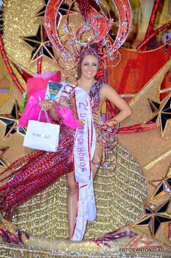 En ese podio carnavalero le acompañarán, como primera dama de honor, Azahara Morán Montesdeoca, que desfiló con el traje El Sol de Arabia, obra de Tito Cabrera y presentando a Comparsa Cubatao; y como segunda dama, la joven Fabiola Santana Falcón, que vistió la alegoría Pasión, fruto de la creatividad de Julio Vicente Artiles, en representación de McDonald y La Provincia-Diario de Las Palmas.