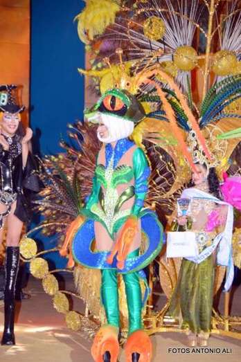 Drag la Tullida representando a Ron La Indiana con la fantasía Pa lo que me queda en el convento la armo dentro, un diseño de Óliver Benítez Benítez. Le entregó la banda y premio (200 euros) la reinona del pasado año, Drag Eiko.
