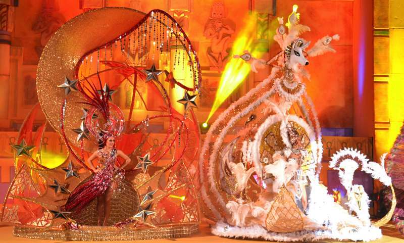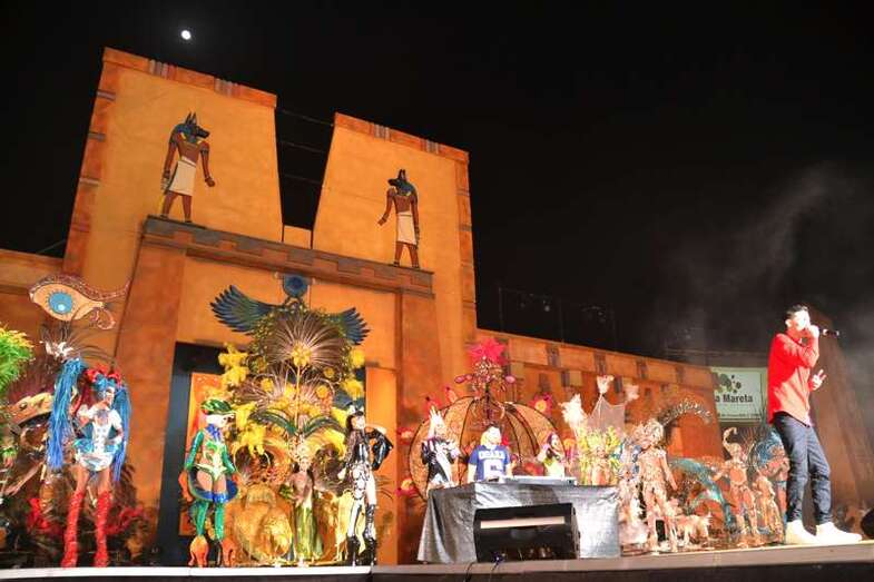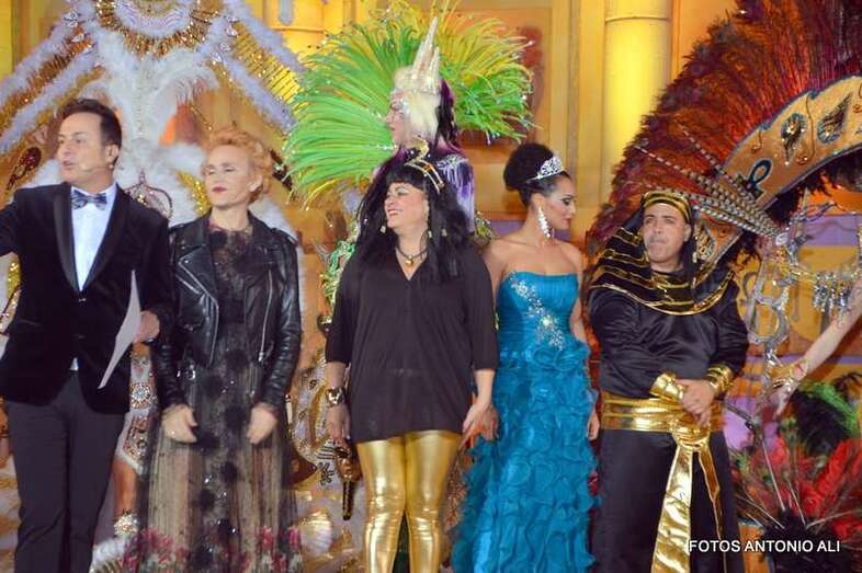 Telde ya tiene faraonas. Los dos jura dos consultaron anoche al dios Atón y emitieron su veredicto. La joven Beatriz Medina Burciaga fue investida reina-faraona de la civilización carnavalera. Y junto a ella, compartiendo trono, está el drag Grimassira Maeva, que se hizo con el cetro de reinona-faraona.