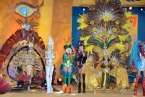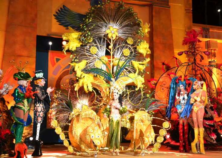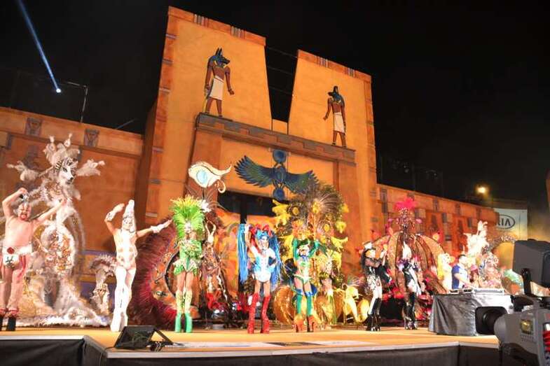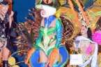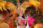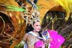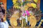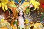 Beatriz Medina, nueva reina del Carnaval de Telde, exhibe su fantasía La joya del faraón, durante el desfile (Foto A. Alí)