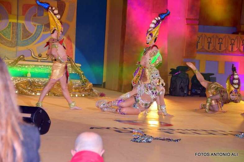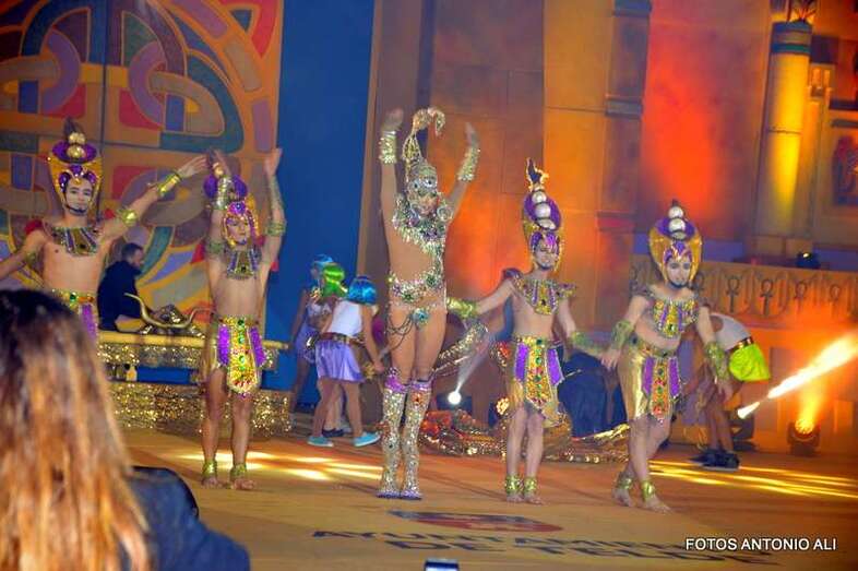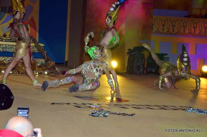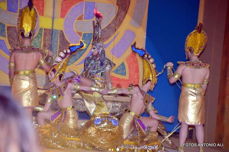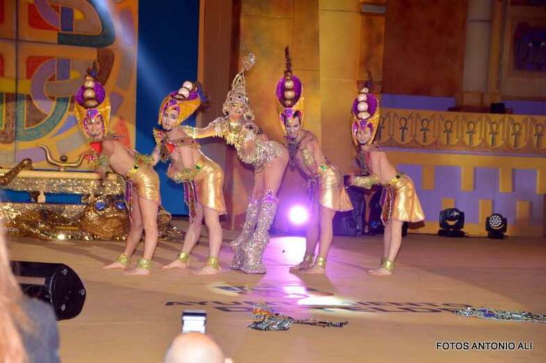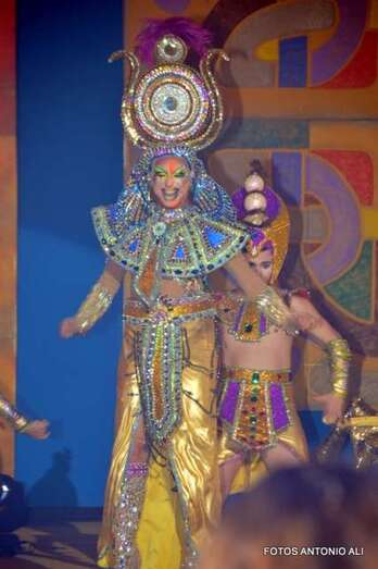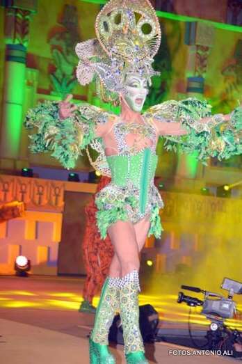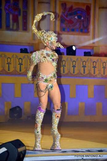 Telde.- Beatriz Medina Burciaga, con la fantasía La joya del faraón, en representación de la Estación de Servicios Cepsa El Cubillo y diseñada por Grisela Gómez, acaba de ser proclamada nueva reina del carnaval egipcio de Telde, mientras que Drag Grimassira Maeva, con la alegoría The miss education of Grimassira Maeva, la turquesa, la chapera, diseño de Rayco Santana y patrocinado por Cross Training Las Palmas, es el nuevo Drag Queen, en una gala que acercó hasta el auditorio José Vélez del parque urbano de San Juan a más de 5.000 personas.