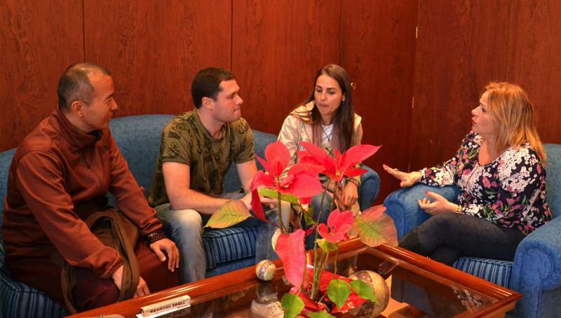 Tras atender a los medios de comunicación, Gaden Nyari Tritul Rimpoche era recibido este mediodía en la Alcaldía del Ayuntamiento de Telde por la primera mandataria. Durante varios minutos, Mari Carmen Castellano conversó e intercambió impresiones con el lama tibetano.