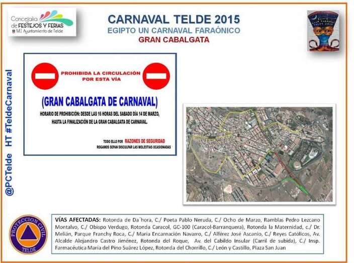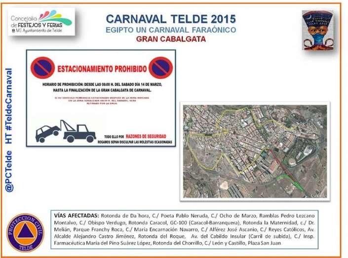 Telde.- El municipio de Telde se llenará de color y ritmo durante la Gran Cabalgata del Carnaval de las pirámides mañana sábado, 14 de marzo de 2015, a partir de las 17.00 horas. A su paso por diferentes calles, dejará el latente el espíritu carnavalero que vive la ciudad desde el pasado 26 de febrero.
