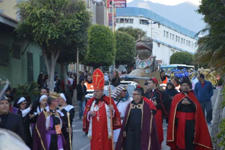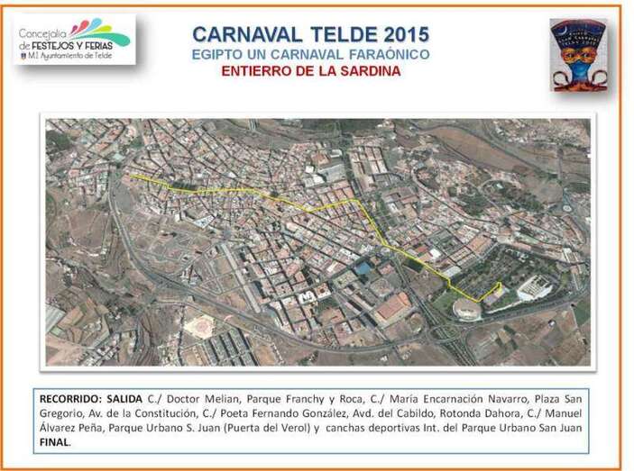 Telde.- Telde enterró esta tarde los carnavales de 2015, dedicado al Egipto antiguo, con la tradicional incineración de la Sardina en las canchas deportivas del parque urbano de San Juan. El desfile que recorrió el casco urbano rompió con el estereotipo de duelo y se transformó en una marcha festiva interrumpida ocasionalmente por los lamentos de las viudas del carnaval.