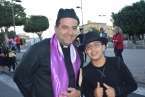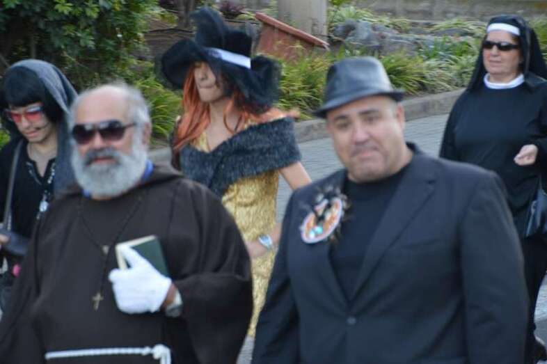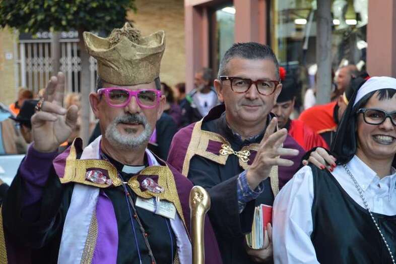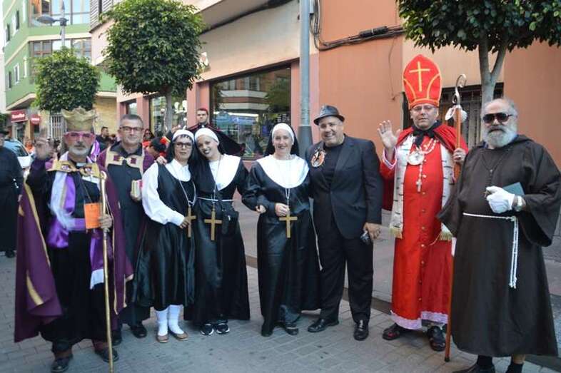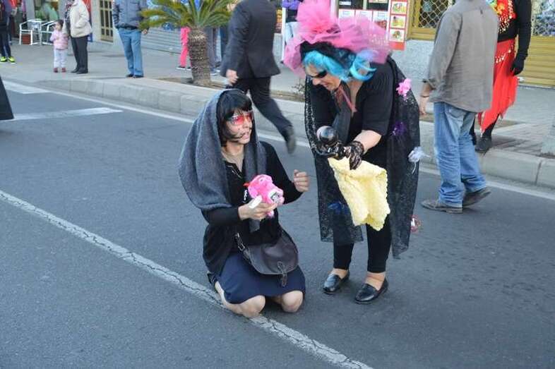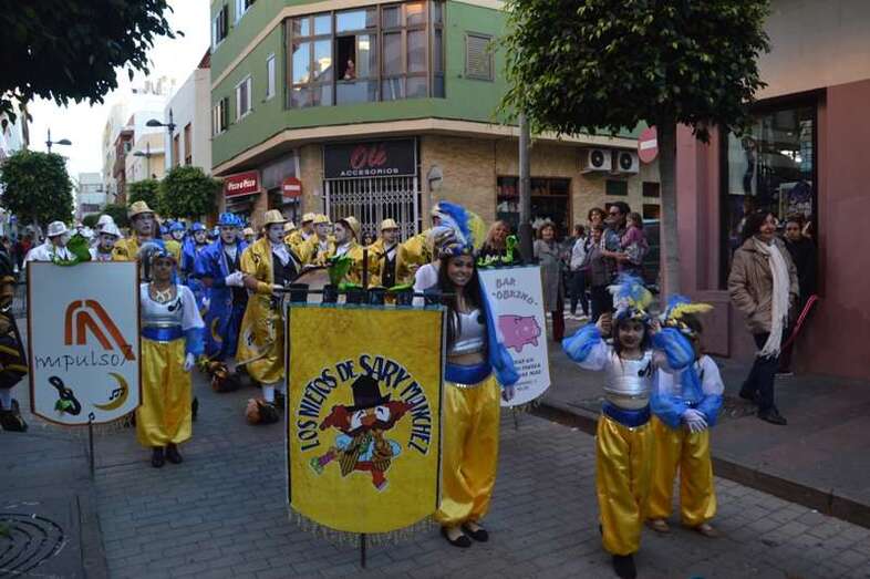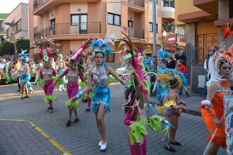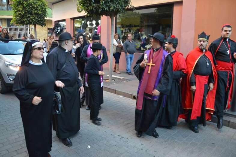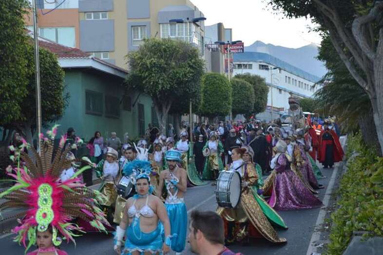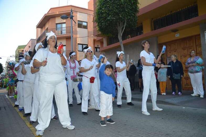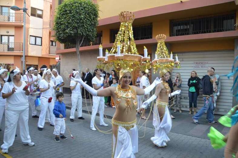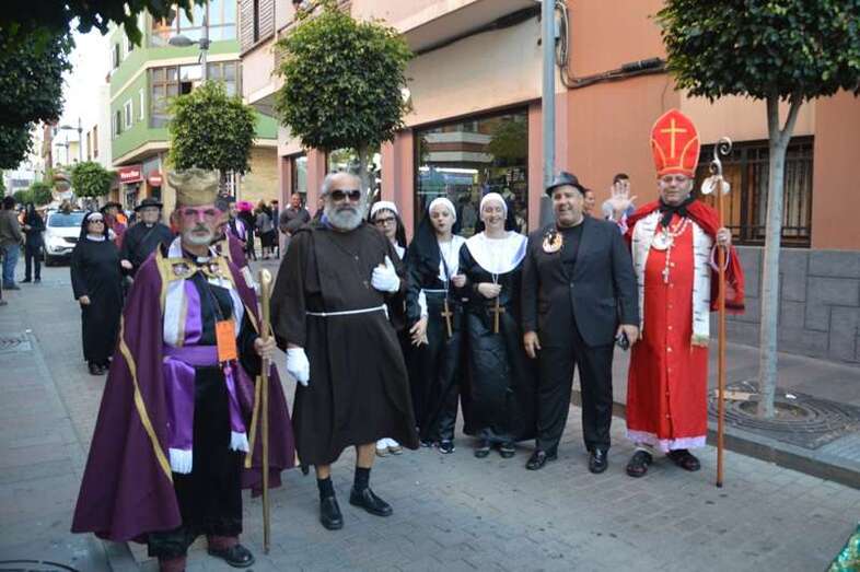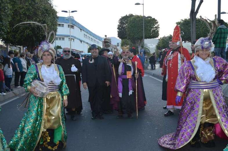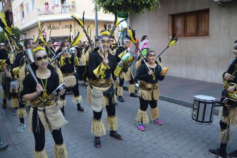 En la comitiva -presidida por la Reina del Carnaval 2015, la guapa y esbelta Beatriz Medina, a bordo de un coche cedido a la organización por la firma Arimotor, y una representación de la curia sacerdotal- primó más los sonidos de las cuatro batucadas (Tío Blas, Rayo de Luna, Samba Isleña y Show Band Los Piratas del Caribe), la música de las cuatro murgas (Las despistadas, Los nietos de Sary Mánchez, Los twitty’s y Las Traviesas) y los bailes de varias comparsas infantiles y adultas (Kisamba, Lianceiros, Cubatao, Chiramay y Yoruba) que los sollozos y alaridos de las apenadas y enlutadas viudas.