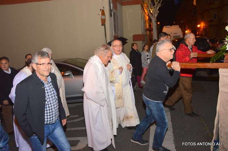 Pasadas las 20.00 horas, al concluir la eucaristía que ofició el vicario general de la Diócesis de Canarias, Hipólito Cabrera, y en la que también participaron un nutrido grupo de sacerdotes del arciprestazgo de la zona, así como una agrupación de música canaria, salía de la Iglesia de San José de Las Longueras la comitiva religiosa.